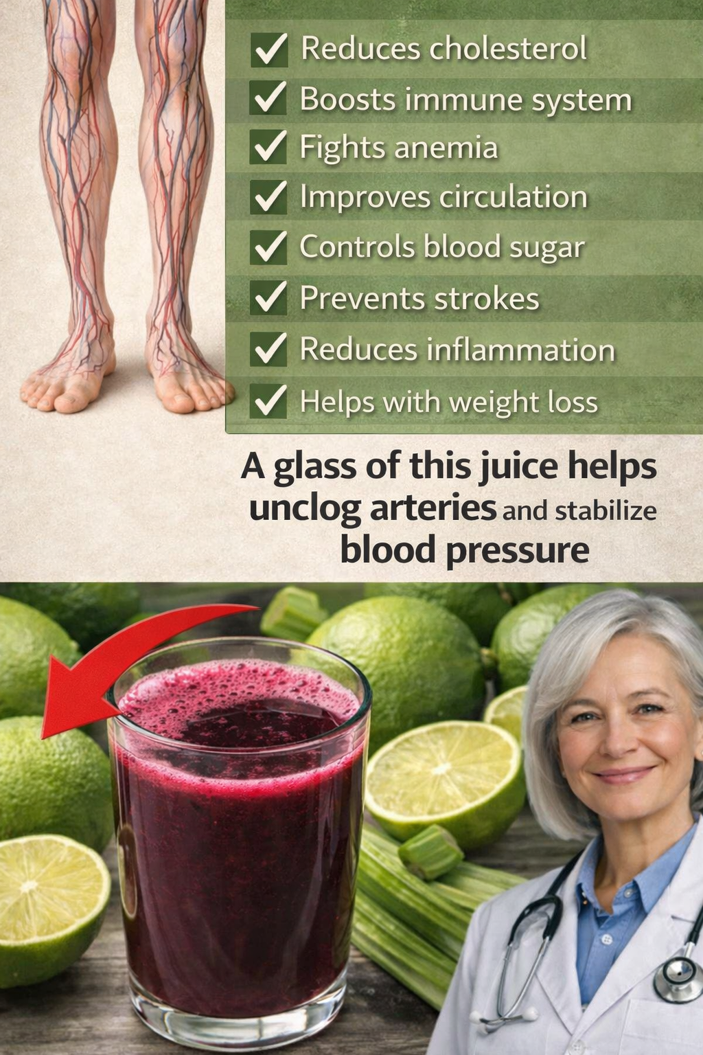 This natural juice is made from ingredients known to support cardiovascular health. While it does not cure clogged arteries or replace medical treatment, it may help improve circulation and support healthy blood pressure when combined with a balanced diet and lifestyle.